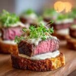 You’ll enjoy how the crisp edges of the toasted baguette provide that perfect crunch beneath the velvety, warm Parmesan cream, all layered over slices of perfectly seared beef. It’s a little celebration on a plate, and I’m excited to show you how easy it is to make yours just as delightful.