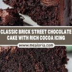 This Brick Street Chocolate Cake is a rich, moist, and fudgy chocolate cake inspired by the popular copycat recipe. Combining cake flour, cocoa, and buttermilk to create a soft crumb, the cake is layered with a luscious chocolate icing made from cocoa, powdered sugar, and heavy cream. Perfect for chocolate lovers looking to recreate a classic dessert at home, this cake balances deep chocolate flavor with a smooth, creamy frosting.