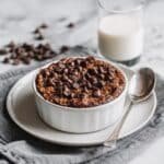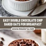 Delight in this easy and nutritious Double Chocolate Chip Cookie Baked Oats recipe, perfect for a warm and comforting breakfast or snack. Made with wholesome ingredients like rolled oats, ripe banana, and cocoa powder, these baked oats offer a fudgy, chocolatey flavor combined with the pleasant texture of chocolate chips. Baked in a ramekin, this single-serving dish is quick to prepare and satisfying.