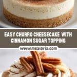 A deliciously creamy Churro Cheesecake that combines the classic flavors of churros with a rich and smooth cheesecake, topped with a cinnamon sugar mixture for an irresistible dessert.