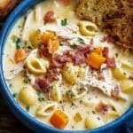 Warm & Familiar Creamy Chicken Mac and Cheese Soup Recipe