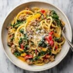 - Can I prepare parts ahead of time? You can chop veggies and crumble sausage in advance. Cook pasta and sausage fresh for best texture.