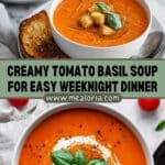 This Creamy Tomato Basil Soup is a comforting blend of roasted fresh tomatoes, onions, garlic, and carrots combined with crushed tomatoes and vegetable broth. Finished with a touch of cream and fresh basil, this soup is velvety, flavorful, and perfect for a cozy meal.
