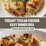 Creamy Tuscan Chicken is a rich and flavorful dish featuring tender seared chicken breasts simmered in a luscious sauce made with heavy cream, sun-dried tomatoes, Parmesan cheese, and fresh spinach. This comforting skillet meal combines Italian-inspired herbs with a creamy texture that’s perfect for an elegant weeknight dinner or special occasion.