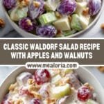 This classic Waldorf Salad is a refreshing and crunchy blend of diced Granny Smith apples, celery, red grapes, and toasted walnuts, all tossed in a creamy dressing made from whipped heavy cream and mayonnaise. It’s a perfect balance of sweet, tart, and creamy flavors, ideal as a light lunch or a side dish for any meal.