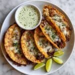 - Garnish and serve: Remove tacos from the pan, garnish with freshly chopped cilantro, and serve immediately while crispy and warm.