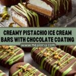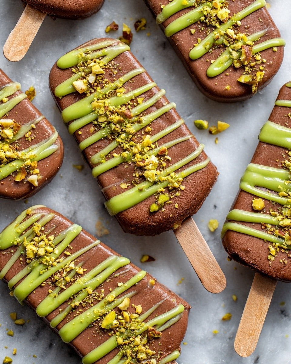 Dubai Pistachio Ice Cream Bars are an indulgent frozen treat featuring a crunchy toasted kataifi and pistachio cream filling, layered with smooth pistachio almond ice cream and coated in rich milk chocolate. Enhanced with optional decorative drizzles and edible gold dust, this elegant dessert combines Middle Eastern flavors with classic ice cream bar decadence.