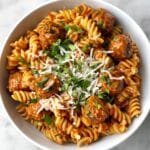 This Easy Pasta with Turkey Meatballs recipe features lean turkey meatballs cooked in a savory marinara sauce, served over your choice of pasta and garnished with fresh basil. It’s a wholesome, flavorful dish perfect for a comforting weeknight dinner that combines simplicity with a nutritious twist.