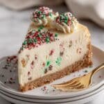 What I truly love about this cheesecake is how the crisp-edged sugar cookie crust pairs perfectly with the velvety filling dotted with festive cookie chunks. As it bakes, you’ll notice a fragrant steam filling your kitchen with vanilla and sweet memories. And the final touch — a glossy white chocolate ganache crowned with crunchy holiday sprinkles and cookie truffles — makes it feel extra special for any gathering.