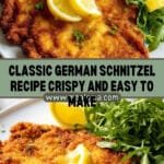 Classic German Schnitzel featuring tender, breaded pork chops fried to a perfect golden brown. This traditional dish is easy to prepare and pairs wonderfully with lemon slices and traditional sides like German potato salad or Spätzle.