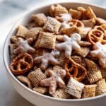 This Gingerbread Party Mix is a festive, crunchy snack perfect for holiday gatherings. It combines crispy Corn and Cinnamon Chex cereals with mini pretzels and crunchy gingersnap cookies, all coated in a warm spiced butter glaze. Finished with a drizzle of melted white chocolate and optional sprinkles, it’s a deliciously sweet and spicy treat that’s easy to make and sure to impress.