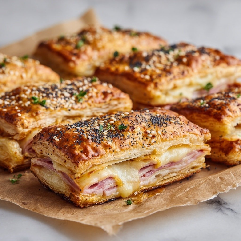 Ham and Cheese Puff Pastry Bites Recipe - Article Image 2 — Ham and Cheese Puff Pastry Bites, savory puff pastry appetizers, easy savory snack recipes, flaky ham and cheese parcels, quick party appetizer ideas