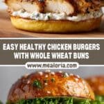 These healthy chicken burgers are made with extra lean ground chicken breast combined with fresh herbs and spices, whole wheat breadcrumbs, and Dijon mustard for a flavorful, nutritious twist on the classic burger. Cooked on the stovetop until juicy and perfectly seasoned, they are a wholesome option served on whole wheat buns.