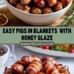 Delicious and easy-to-make Pigs in Blankets featuring succulent cocktail sausages wrapped in smoky streaky bacon, baked to crispy perfection and finished with a drizzle of sweet honey for a perfect balance of flavors. Ideal as a party snack or a comforting appetizer.