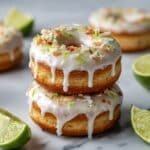 These Key Lime Coconut Donuts are a delightful treat combining the zesty brightness of fresh key lime with the tropical sweetness of coconut. Light, fluffy, and baked to perfection, they feature a tangy glaze made from key lime juice and confectioners’ sugar, topped with toasted shredded coconut and extra lime zest for a burst of flavor and texture. Perfect for a refreshing breakfast or an irresistible dessert.