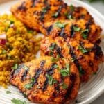 This Moroccan-Spiced Grilled Chicken Breasts recipe features tender chicken breasts marinated in a fragrant blend of traditional Moroccan spices like cumin, paprika, coriander, cinnamon, and a hint of cayenne for heat. Grilled to perfection, the chicken boasts a smoky char and vibrant flavors, perfect for a healthy and flavorful meal.