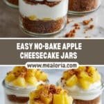 These No-Bake Apple Cheesecake Jars are a delightful and easy-to-make dessert featuring a crunchy graham cracker crust, creamy cheesecake filling, and a sweet apple topping. Perfect for a quick treat or an elegant dessert without turning on the oven.