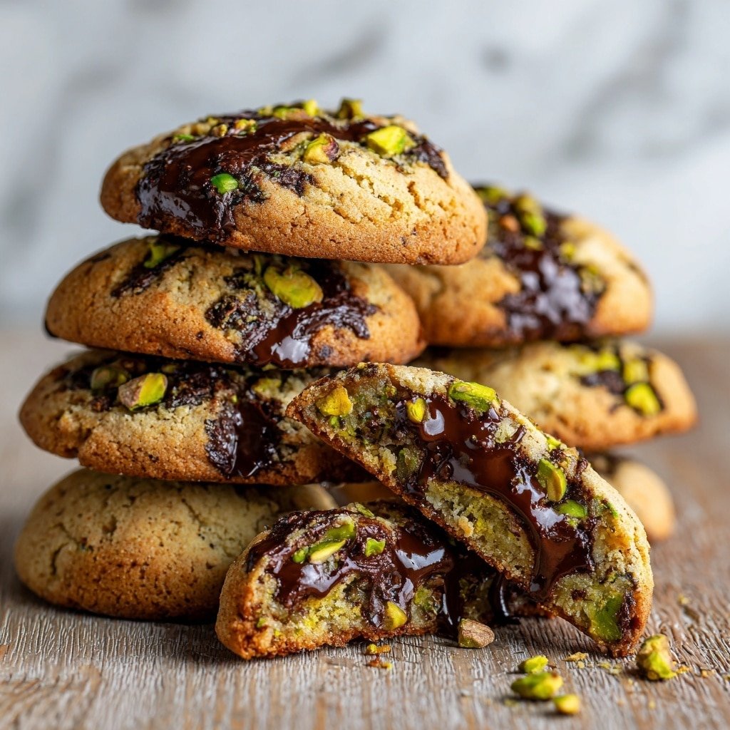 - Cool and garnish: Once out of the oven, sprinkle sea salt flakes and extra chopped pistachios on top while the cookies are warm—salt heightens the nutty flavor and chocolate’s complexity. Let them cool for about 10 minutes; this rest helps the pistachio cream inside settle into a velvety texture that’s every bit as irresistible as you hope.