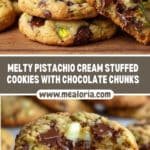 Delight in these rich and flavorful Pistachio Cream Cookies, featuring a buttery cookie dough studded with chopped pistachios and chocolate chunks, encasing a luscious pistachio cream filling. Finished with a sprinkle of sea salt flakes and extra pistachios, these cookies offer a perfect balance of sweet, nutty, and salty flavors with a melty, creamy center.