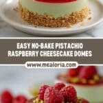 These Pistachio Raspberry Cheesecake Domes are delightful no-bake treats featuring a crunchy graham cracker base, creamy pistachio-flavored cheesecake filling, and a fresh raspberry puree layer. Perfectly portioned in silicone dome molds, they are elegant, refreshing, and ideal for summer desserts or special occasions.