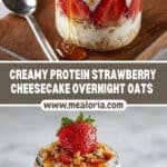 This Protein Strawberry Cheesecake Overnight Oats recipe is a delicious and nutritious way to start your day. Combining creamy Greek yogurt, cream cheese, and vanilla protein powder with fresh strawberries, it delivers a smooth, rich taste reminiscent of cheesecake. Easy to prepare and perfect for a no-cook, grab-and-go breakfast that fuels your morning with protein and fiber.