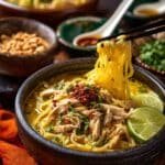 There’s something incredibly comforting about a bowl of laksa—a rich, fragrant burst of flavors that feels like a warm hug in a bowl. My Quick Chicken Laksa Recipe brings that same satisfying experience without needing hours or complicated prep. Whether you’re cooking on a busy weeknight or craving something cozy and exotic, this recipe delivers with buttery coconut cream, spicy-sour brightness, and tender shredded chicken that melts into velvety noodles.