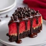 This Red Velvet Cookie Dough Cheesecake is a decadent no-bake dessert combining luscious cheesecake filling with soft, chocolatey red velvet cookie dough and a crunchy chocolate sandwich cookie crust. Featuring mini chocolate chips folded into the dough and a whipped cream-enriched cheesecake, it’s a delightful treat perfect for any special occasion or indulgent dessert craving.