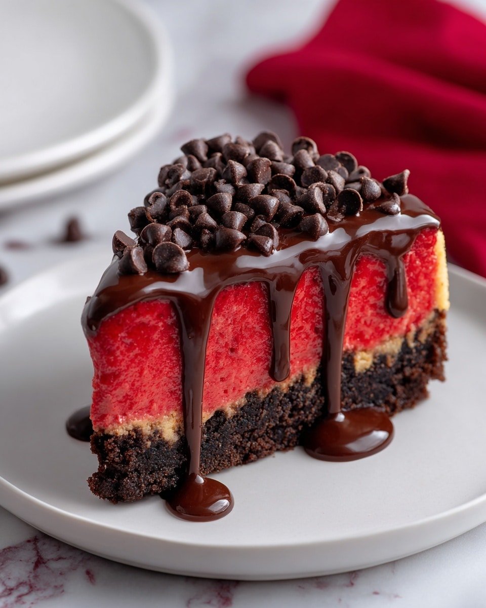 Whenever I make this, I love how the sweet fragrance of cocoa and vanilla fills the kitchen, and the rich, creamy cheesecake contrasts beautifully with the slightly crisp-edged cookie dough pieces nestled inside. Each bite is like a little treasure hunt—soft cream cheese, bursts of chocolate chips, and that unmistakable red velvet tang.
