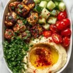 This Spicy Garlic Chicken Bowl with Hummus & Cucumber Salad is a flavorful and balanced meal perfect for lunch. Tender cubed chicken breast is seasoned with smoky paprika, cayenne, and cumin, then pan-seared to juicy perfection. Paired with creamy hummus, a refreshing cucumber and red onion salad, and an optional grain base of quinoa or rice, this bowl offers a delightful combination of spice, creaminess, and crunch in every bite.
