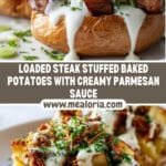 Steak Stuffed Baked Potatoes with Parmesan Sauce Recipe