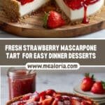 A luscious Strawberry Mascarpone Tart featuring a buttery, crisp crust topped with a creamy mascarpone and whipped cream filling, finished with fresh, vibrant strawberries and an optional honey glaze for an elegant and refreshing dessert.