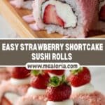 Strawberry Shortcake Sushi Rolls are a fun and creative twist on the classic dessert, featuring a delicate vanilla sponge cake rolled with sweet strawberry jam, fresh sliced strawberries, and fluffy whipped cream. These bite-sized rolls are perfect for parties or a delightful treat, garnished with melted white chocolate or powdered sugar for an elegant finish.