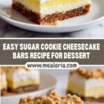 Deliciously rich and creamy Sugar Cookie Cheesecake Bars combining a buttery sugar cookie base and crumble topping with a smooth cheesecake layer in between. These bars are perfect for dessert lovers who enjoy the best of both classic sugar cookies and silky cheesecake in one treat.