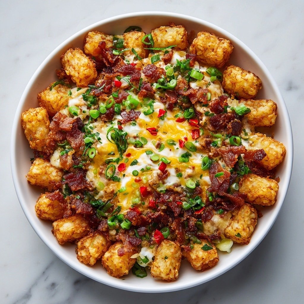 There’s something deeply satisfying about a breakfast that feels both cozy and a little bit indulgent. This Tater Tot Breakfast Bowl Recipe hits that sweet spot — warm, hearty, and loaded with textures that make your morning brighter. I love how those crisp-edged tater tots give way to fluffy scrambled eggs and melty cheese, with just the right touch of savory bacon or sausage. It’s like a morning hug in a bowl. You’ll notice the comforting aroma filling your kitchen as you cook, inviting everyone to gather ’round. Whether it’s a weekend treat or a weekday wake-up call, this bowl comes together with ease and delivers on both flavor and texture. The best part? It’s endlessly customizable, so you can make it your own in a snap. Let’s dive in and get those tater tots crispy and your eggs velvety-soft. I promise, once you try this Tater Tot Breakfast Bowl Recipe, it’ll become a favorite early morning ritual.Standout Details