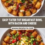 The Ultimate Tater Tot Breakfast Bowl is a hearty and delicious morning meal featuring crispy oven-baked tater tots, fluffy scrambled eggs, savory bacon or sausage, melted cheddar cheese, and fresh vegetables. This satisfying breakfast comes together easily and can be customized with toppings like sour cream or salsa for extra flavor.