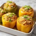 • Can I prepare the filling ahead of time? Absolutely! You can mix the filling a day in advance and refrigerate it. Just stuff the peppers right before baking.
