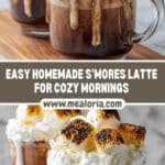 Enjoy a luxurious and cozy S’mores Latte featuring toasted marshmallow and chocolate syrups blended with hot espresso and steamed milk, topped with perfectly toasted marshmallows for a delightful dessert-inspired coffee treat.