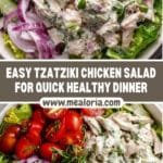 A refreshing and creamy Tzatziki Chicken Salad combining tender shredded chicken with a homemade Greek yogurt cucumber tzatziki sauce, enhanced with fresh herbs, olives, and feta cheese. Perfect for serving in pita bread, on greens, or as a light, flavorful meal.