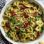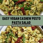 A vibrant and flavorful Vegan Cashew Pesto Pasta Salad combining a creamy, nutty cashew basil pesto with roasted red peppers, sundried tomatoes, and fresh wild rocket for a refreshing and nutritious meal perfect for warm days or light lunches.